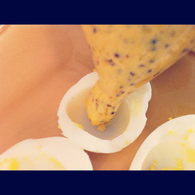 Transfer the yolk mixture to a pastry bag with a half-inch wide opening. (If you wish, fit the bag with a half-inch star tip before filling.) Squeeze the yolk mixture into the hollows in the whites, and place on a serving platter. Sprinkle the filling with the parsley, and then the paprika. Cover with plastic wrap and refrigerate until chilled, at least one hour and up to eight hours. Serve chilled.